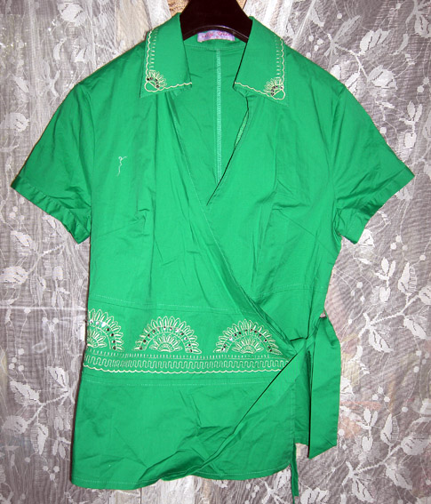 4. Зелёная стрейчт блуза на запахе.