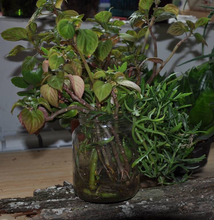 Черенки с корнями (в воде) и в земле, укоренённые, молодые и не очень росточки.
