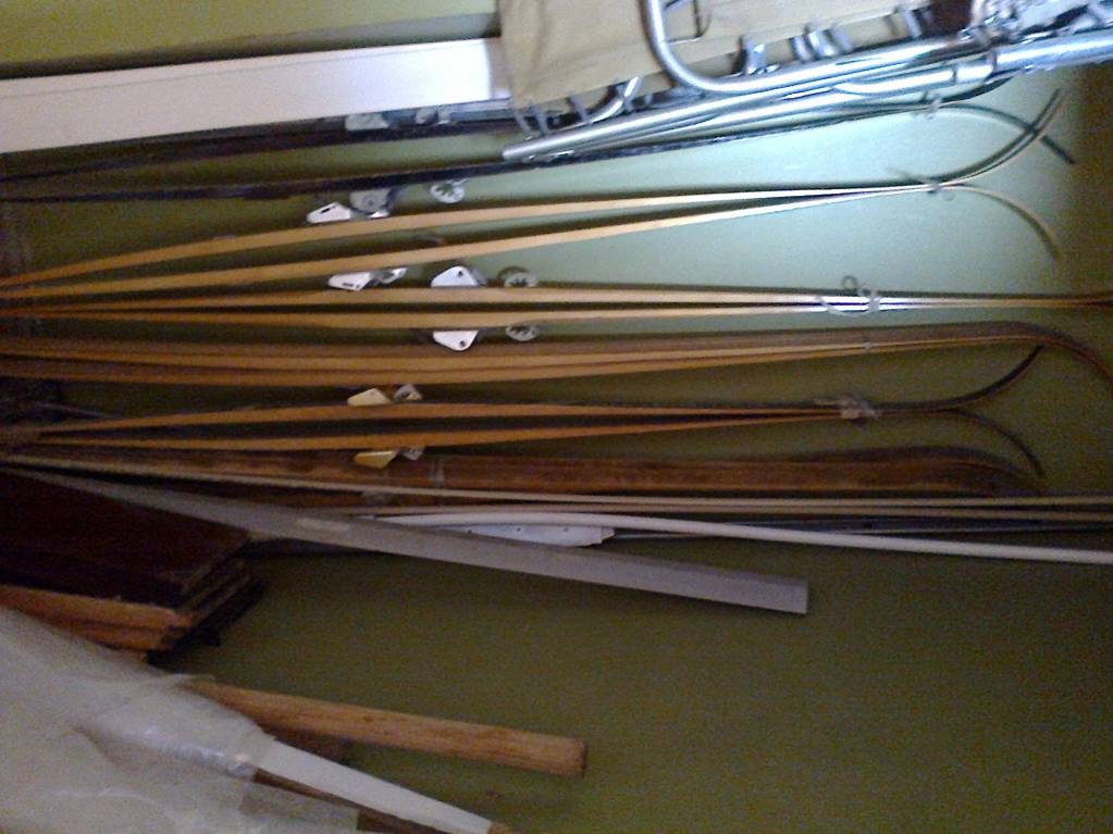 При разборке общей этажной кладовки найдены: несколько пар разнообразных лыж, выглядят новыми; двое санок - одни простые, поломаны рейки, другие навороченные; трёнажёр для спины. Всё пыльное, т.к. лежало там много лет. Полежаевская, 8 минут пешком.