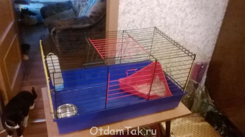 Отдам клетку для кролика 70х40х35 вместе с поилкой, туалетом и миской для корма + опилки и сено!!!