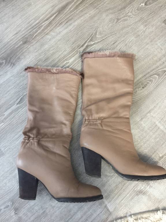 Отдам зимние сапоги б/у 37 размера. Натуральный мех и натуральная кожа. Слегка стёрт каблук, во всем остальном идеальный вид.