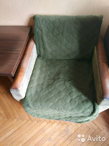 Два кресла с бархатными чехлами(очень удобные) и столик журнальный.