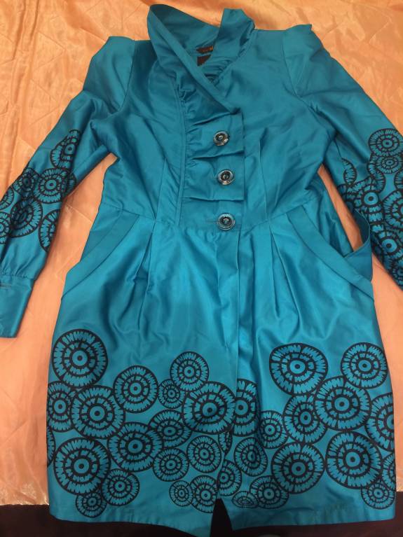 На плаще отсутствует верхняя пуговица. Самовывоз м. Славянский б-р 89104304153 Юлия
