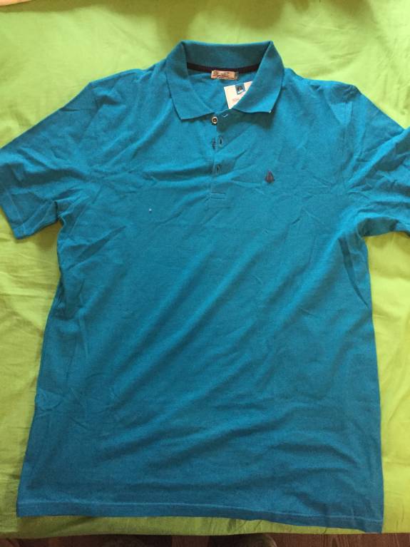 Отдам мужское поло новое, с этикеткой, яркого лазурного цвета.