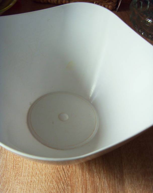 отдам два салатника, глубокие, один из толстого стекла советский, второй пластиковый белого цвета.
