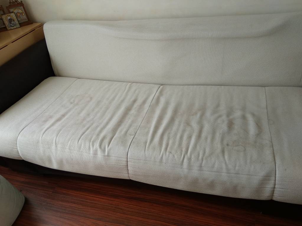 Отдам срочно в связи с переездом. Диван в эксплуатации 3 года. Требуется химчистка. Ткань рогожка( легко поддается чистке). Возможно как вариант для дачи.