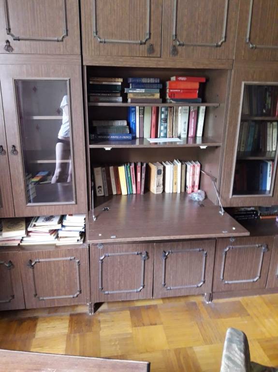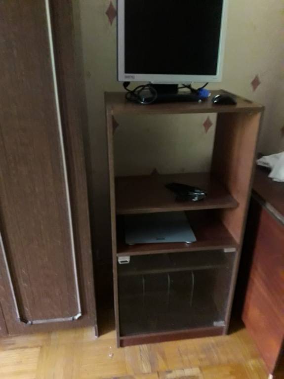 Осталась тумба для постельного белья, тумба для радиоаппаратуры и стол-книжка.