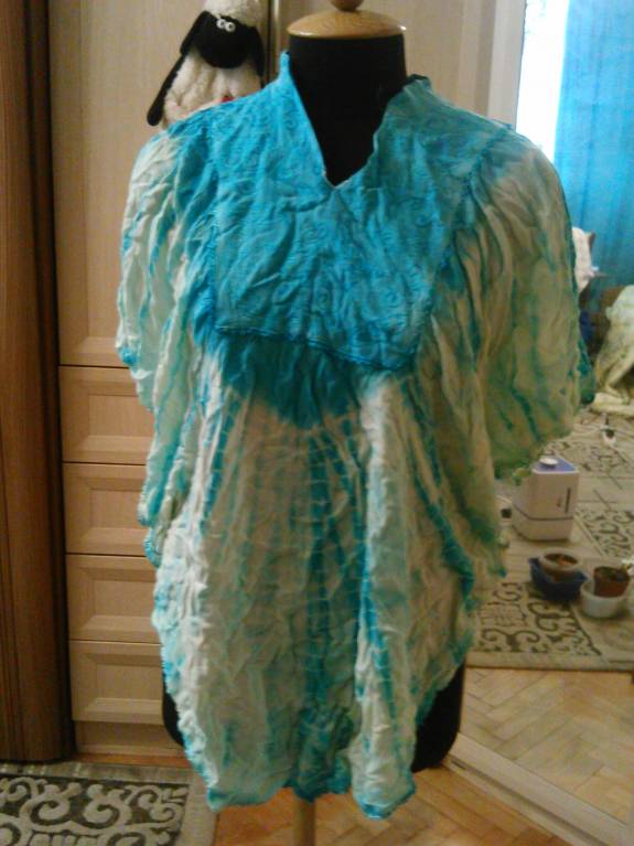 Летняя блузка-размахайка марлевка Индия, 50р на дачу таскать. Незаменима в жару. Б\у, ворот подштопан