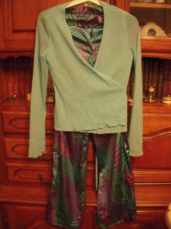 Комплект: атласные брюки и прозрачная кофточка на 44 размер.