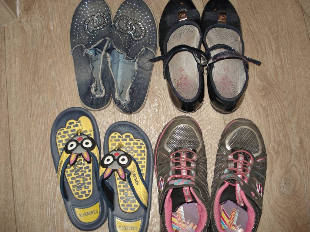 Сланцы -32 разм., Туфли -33, Джинсовые -35, Кроссовки 33