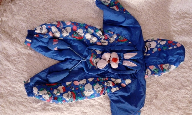 Длина от плеч до низа штанины - 67 см. Сзади портфель в виде зайчика, отстегивается. Самовывоз м. Бауманская 79773372382