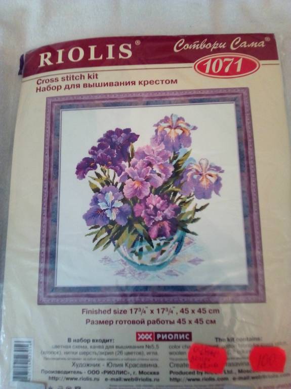 7.Риолис №1071 "Ирисы" НЕТ КАНВЫ, остатки ниток 100руб (немного зачеркнута схема-читаемо)