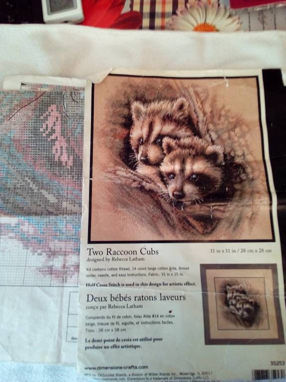 9.Dimensions "Два енотика" НЕТ КАНВЫ, остатки ниток 100руб (зачеркнута схема-читаемо)