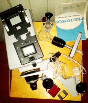 t>Фотоувеличитель "Юность", типа ФЛЗ - фотоувеличитель простого типа с щелевой наводкой на резкость, предназначенный для проекционной печати с негативов размером 24х36 и 18х24 мм. Аппарат даёт увеличение от 2,5 до 8 крат.<br/>