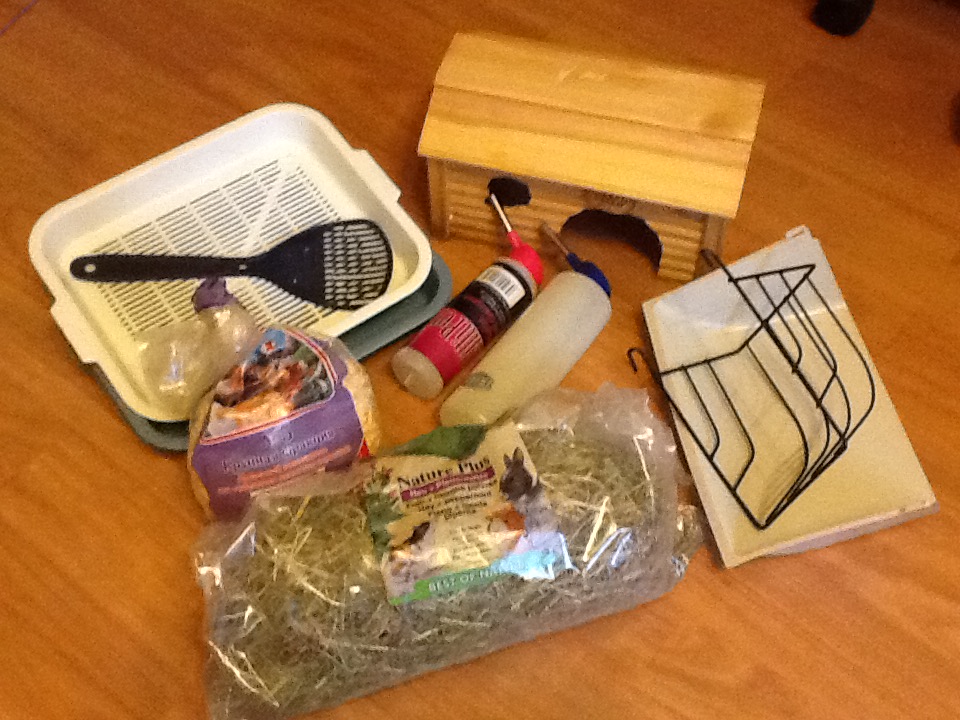 Отдам для морских свинок или кролика маленький лоток, деревянный домик, лопатку, две поилки, два сенника ( металлический и пластиковый), половину пакета душистого сена и остатки опилок.
