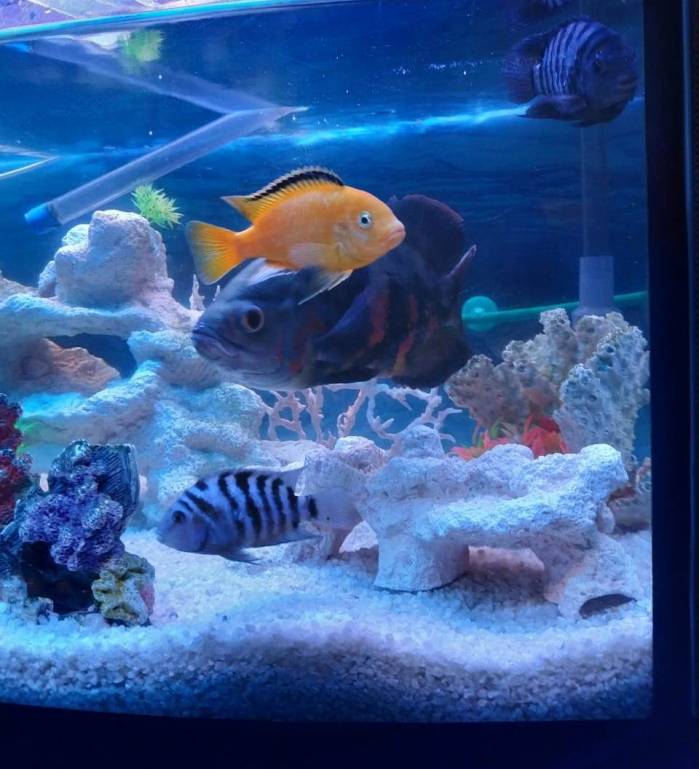 Отдам рыб Цихлиды 5 шт,одна большая и четыре поменьше.Здоровые,красивые).т 89060588420 Светлана