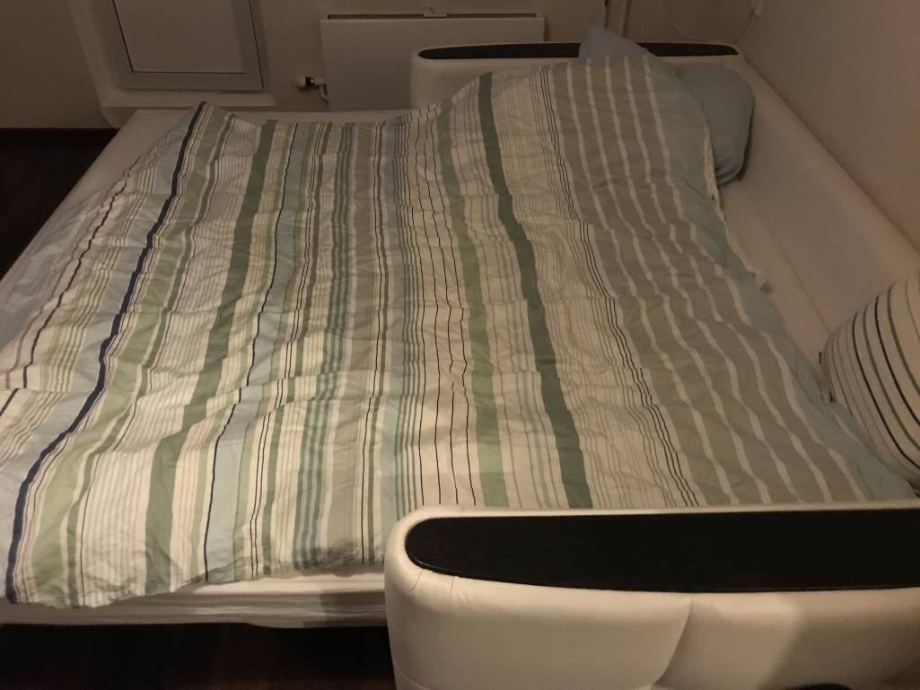 Большой удобный Диван. Италия. Прекрасно подходит для ежедневного сна. Цвет белый -экокожа. Подлокотники - деревянные вставки. Обивку можно заменить-по желению, возвратная пружина не работает. Собирается книжкой. Габариты : 236*120*95 Спальное место: 205*192