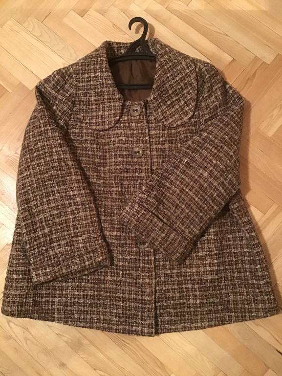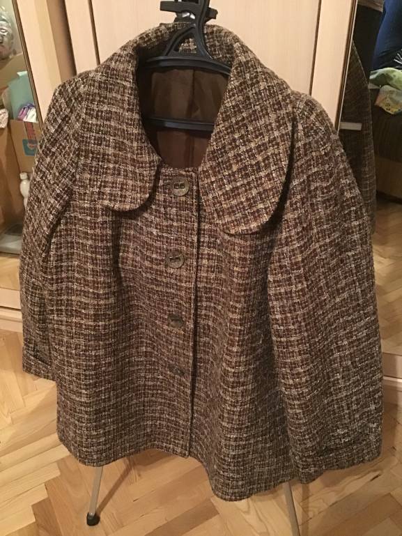 Отдам даром полупальто осенне-весеннее б/у. Шила для молодой девушки. Размер точно указать не могу, так как изменился при пошиве и примерке. Ориентировочно 54-56-58. Пальто расклешеное от груди к линии бёдер . Рукава прямые с отворотом. Воротник отложной, объемный. При крое уменьшила линию плеча и рукав сделала реглан-огрызок. Это и не реглан, и не полуреглан, а так, вариации на тему: сделать все, чтоб казаться поменьше.