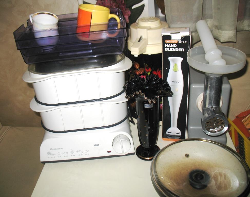 Электромясорубка советская, пароварка Braun (рабочая, но заедает ручка таймера, надо периодически подкручивать), термос большой, ручной блендер, ваза для цветов, сковорода б/у, чашки. Отдам срочно, желательно в одни руки. Самовывоз м. Лермонтовский пр-т