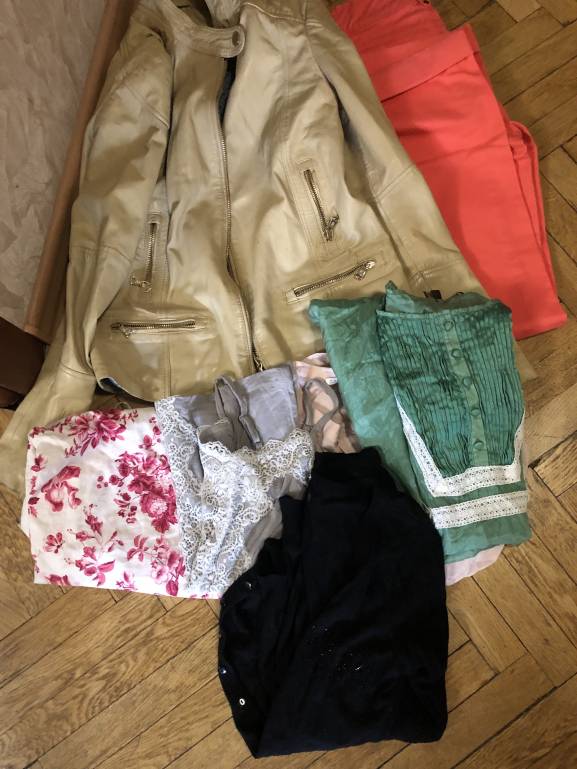 Отдам пакет женской одежды 42-44 размер: кожаная куртка, кофта, брюки, летний сарафан, топы, шорты