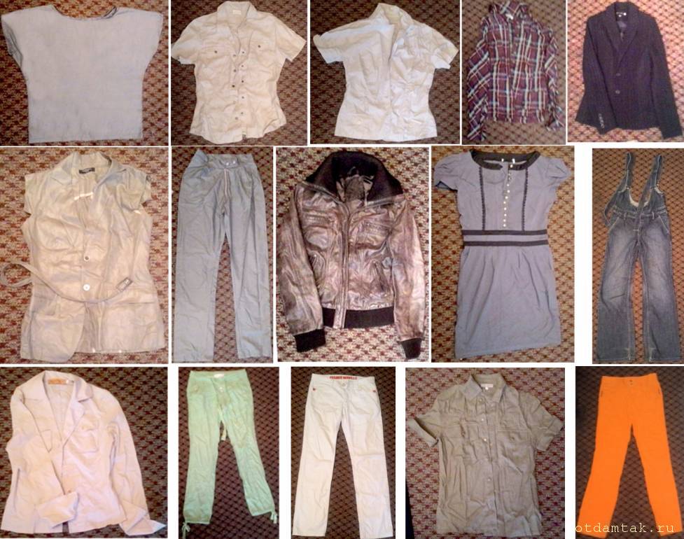 Отдам женские блузки, брюки, джинсы, комбинезон, куртку, платье. Размер 42-44 (кроме белых джинсов, они 46-48)