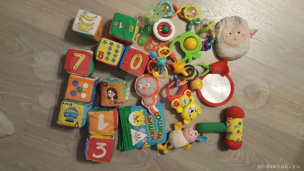 Пакет игрушек: мягкие звери, мягкие кубики, погремушки, мелкие развивашки (больше, чем на фото)