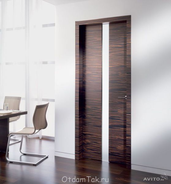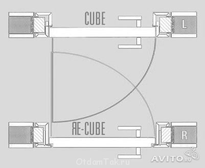 Полотно (с открыванием от себя), наличники и стена - все в одной плоскости. Конструкция re-cube на схеме.